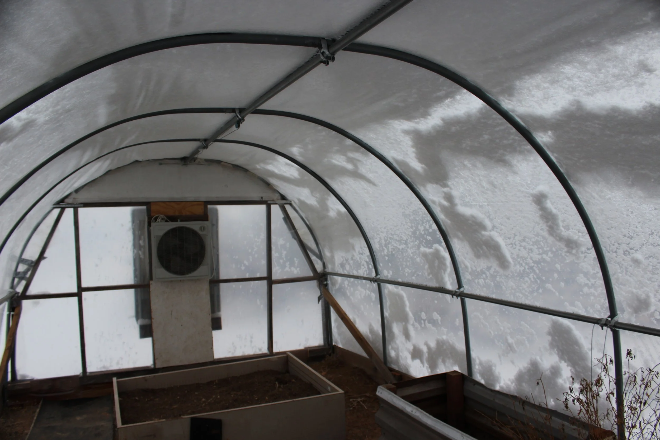 It’s a ground set, metal hoop, high tunnel greenhouse, with 2x4 framed end walls, that can be insulated, and a real door!